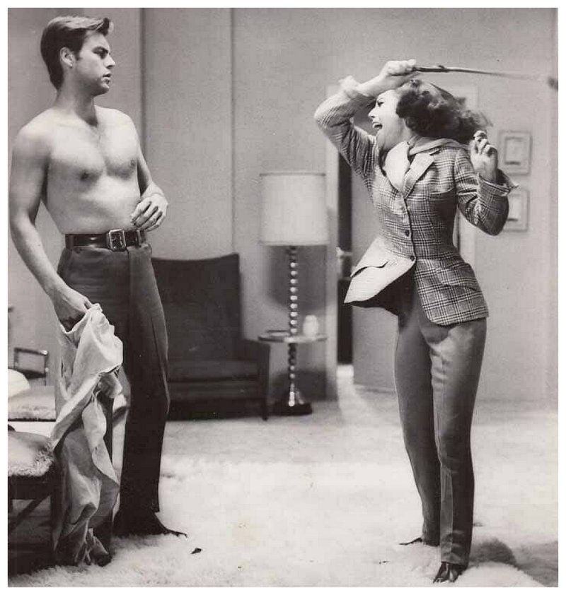 This is said to be Susan Kohner whipping a bare-chested Robert Wagner, in the 1960 MGM movie All The Fine Young Cannibals: