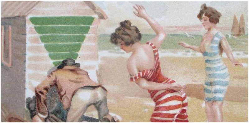 He was getting an eyeful at a beachside changing room, but now he is about to get a serious spanking surprise: