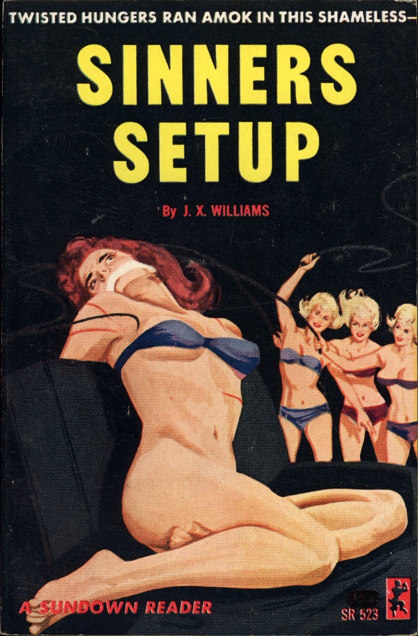 Artwork is from the cover of a pulpy novel called Sinners Setup (Sundown Reader SR-523).