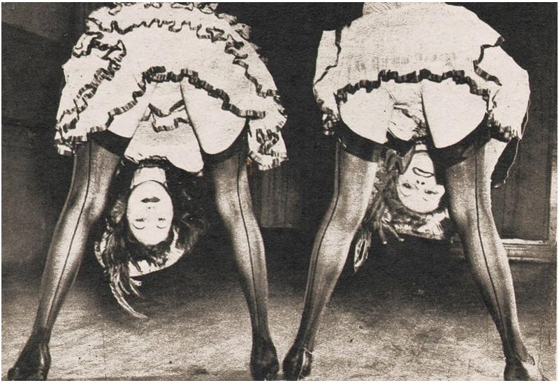 The audience thinks this cancan pose is just a normal part of the show, a risque and titillating display. Little do they know that these club dancers have an extremely challenging rehearsal schedule and that mistakes are routinely punished in this position: