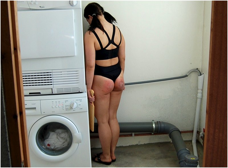 When she’s been especially naughty, he sends her to the basement to do her corner time. It’s lonely, it’s out of the way, and a full cycle of the dryer makes a convenient timer, complete with a loud buzzer at the end: