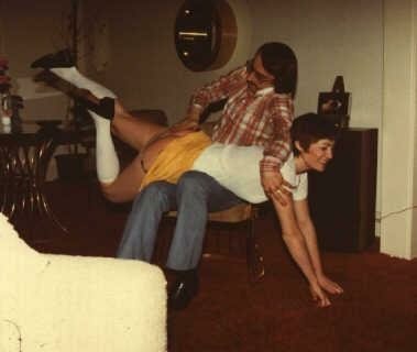 I wish I had a better version of this 1970s-looking snapshot. My interpretation: a grinning wife getting an over-the-knee spanking from her husband. Happy wife, happy life!