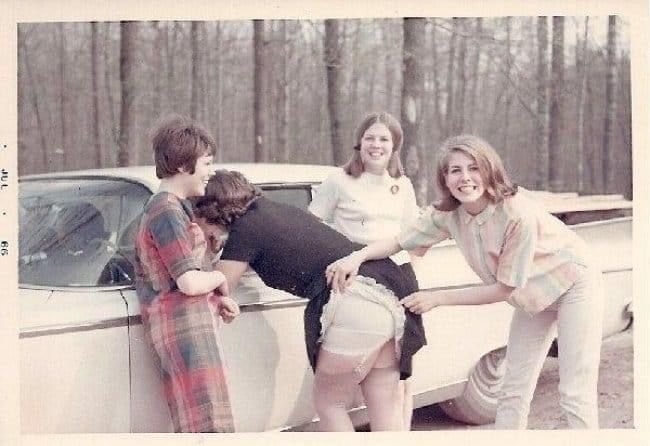 It was July of 1966. Five sorority girls were out cruising around in a fine automobile, just looking for shenanigans and a good time. They stopped to smoke along a quiet country road when somebody decided it was time to give the pledge a lingerie check, because this sorority has standards by damn! After the violation is documented photographically, I’m sure there will be paddle swats: