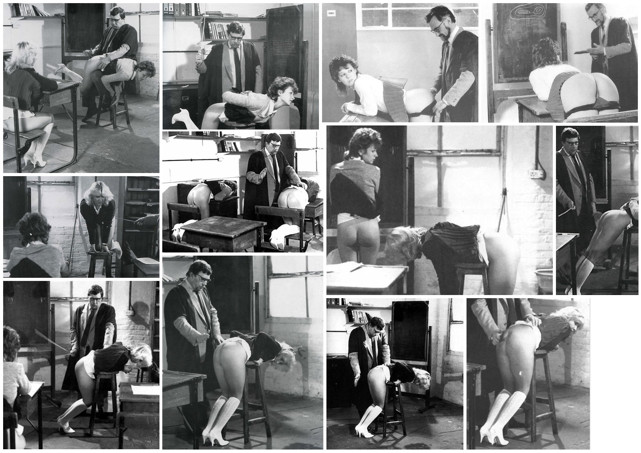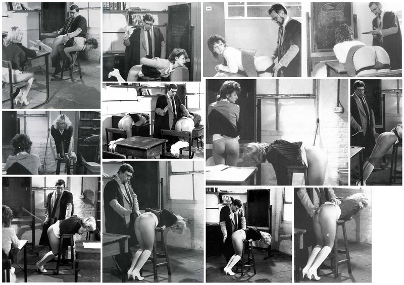 These are from a photo series (perhaps originally published in one of the Blushes supplements) starring a blonde and a brunette getting hand spanked and caned in an old-fashioned schoolroom by a very formal British educator.