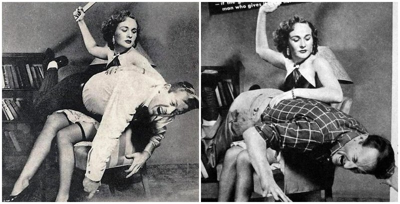 According to a post on ErosBlog, these photos show the legendary fetish photographer and publisher John Willie getting spanked over a woman’s knee: