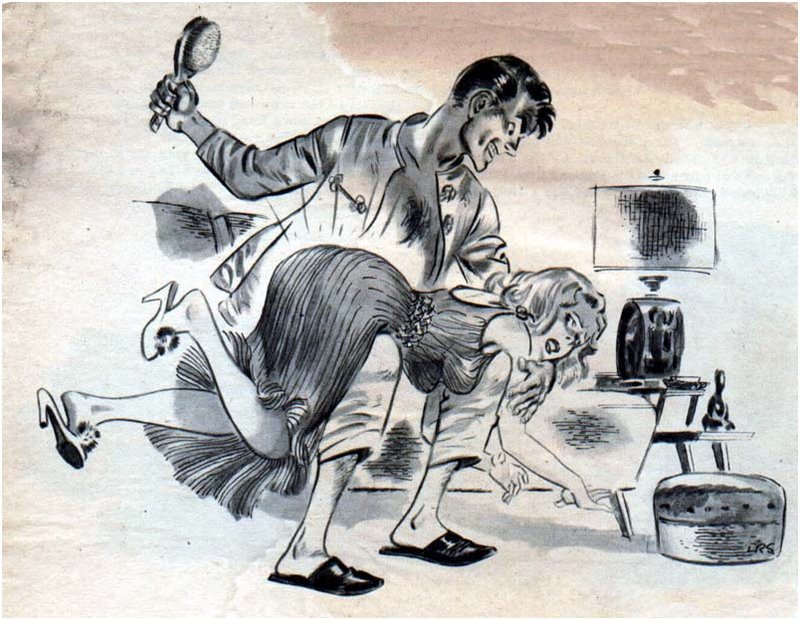 It’s amazing how many artists and cartoonists back in the day didn’t seem to understand that you spank a woman’s bottom with the hard flat back of the hairbrush, not the bristle side: